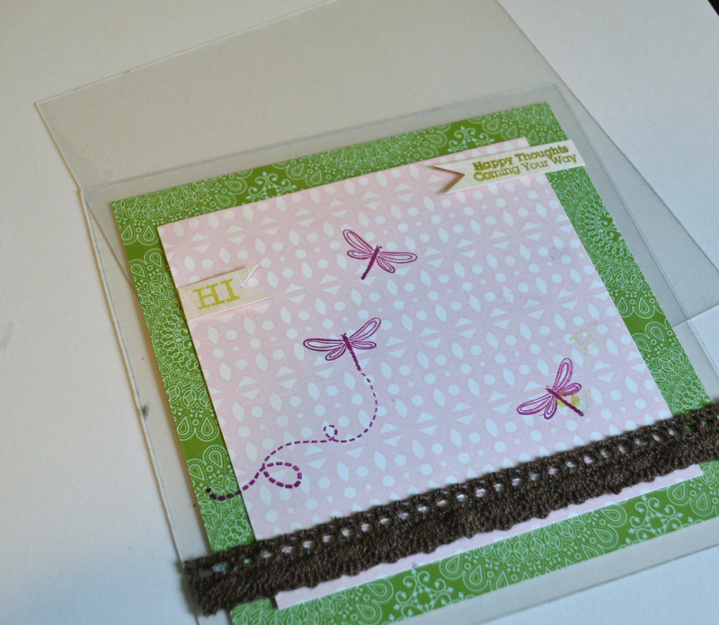 - Stamp and embellish layering pieces as you would a scrapbook page. (Paper used: Pink Paislee. Stamps Used: Avocado Arts).