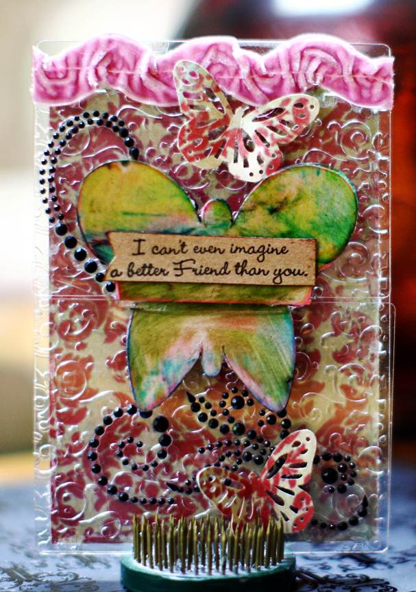 Hello everyone! Adora here today to share this card I created with the newest, Clear Scraps, Butterfly Send-It-Clear Card!!! What a fun card to received, but probably not as much fun creating it :) I love these cards!!!