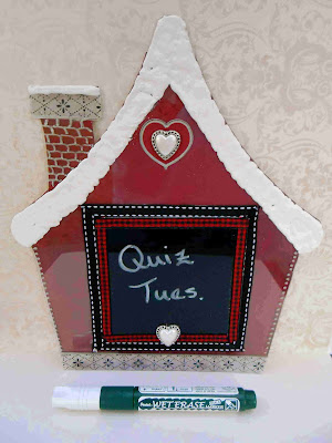 This summer I was watching "Craft Wars" and fell in love with the little Red Schoolhouse that one of the contestants made as a playhouse. So I was inspired to create a Li'l Red Schoolhouse from the gingerbread house from Clear Scraps Gingerbread Banner. My practical side likes functional art, so I decided to turn this into a message board as well.