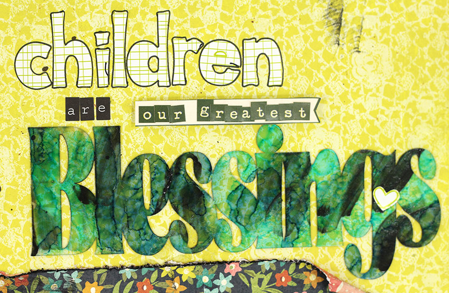 For the word Blessings, I alcohol inked the backside a nice Aqua color. On the front side, I took the Viva Decor pen in Anthracite and smeared some in different places to create a nice grunge look to it.