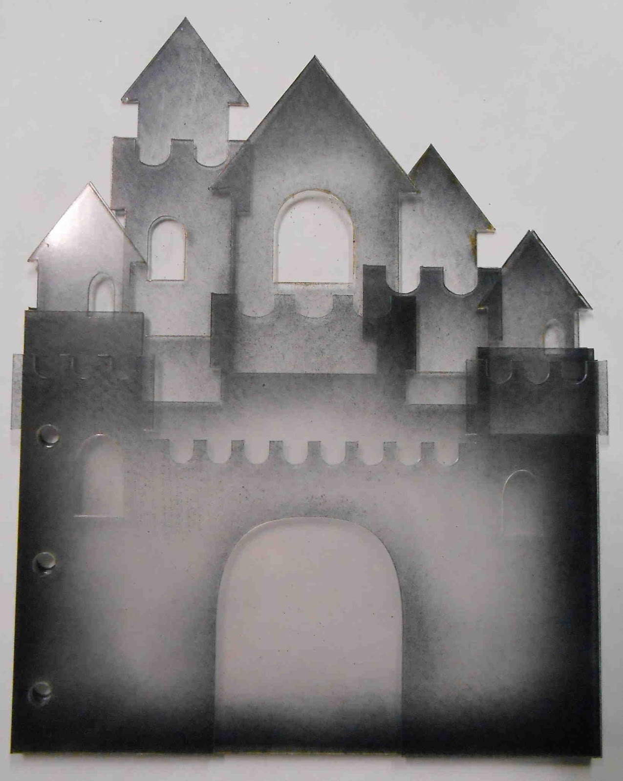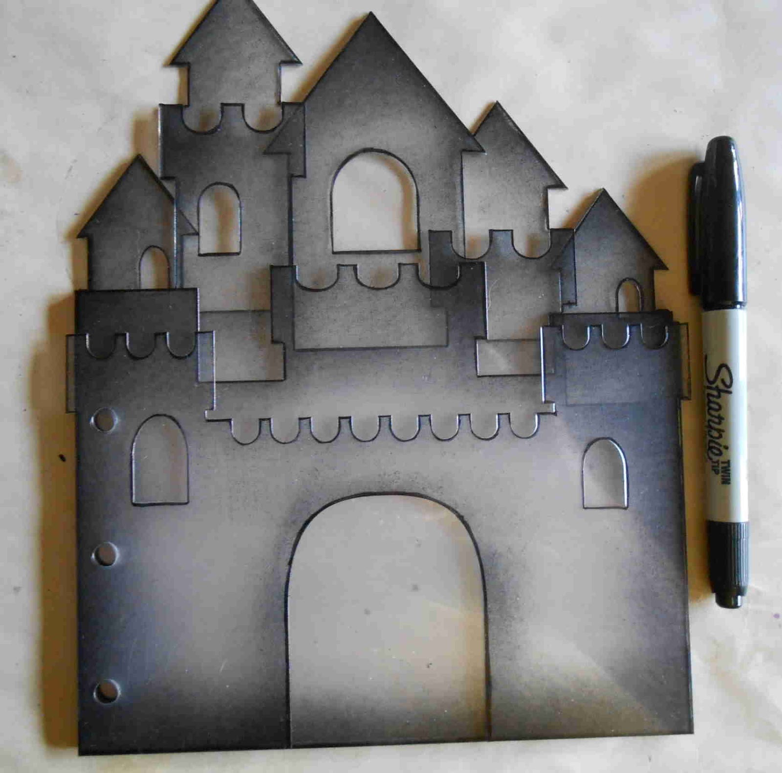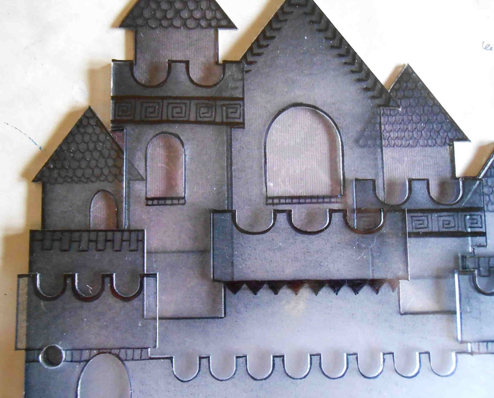 Here's a closer look at some of the details. If you are not a great doodler or free hand artist, here is a really great thing about Clear Scraps….THEY'RE CLEAR!! I used a printed boarder for the square scroll pattern and simply traced it. I also used a line grid behind the acrylic to make sure my shingles stayed fairly uniform or at least fairly straight.