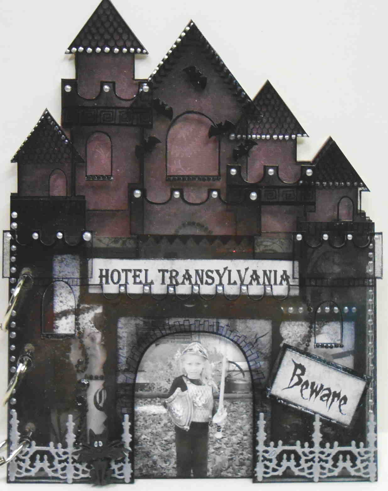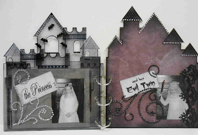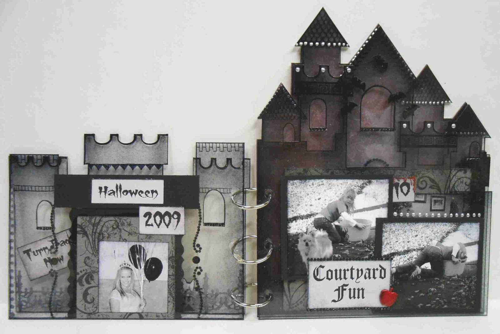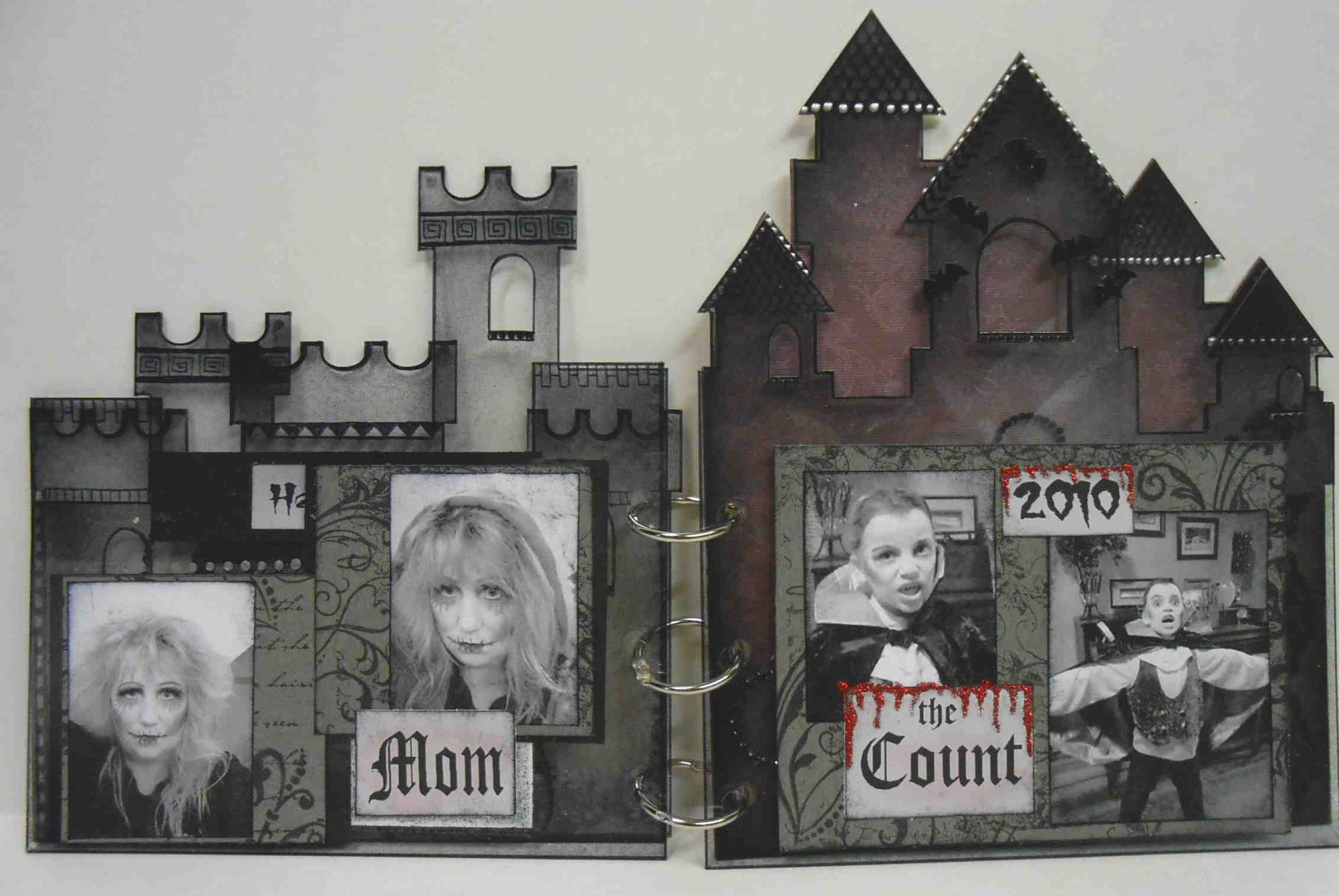 When I originally got this album I had imagined something very frilly and sweet, but when I started to gear up for Halloween, this album just cried out to become a Haunted Castle. And since my kids share my love of Halloween and odd sense of humor, I had a perfect set of photos to fill it with and keep the theme.