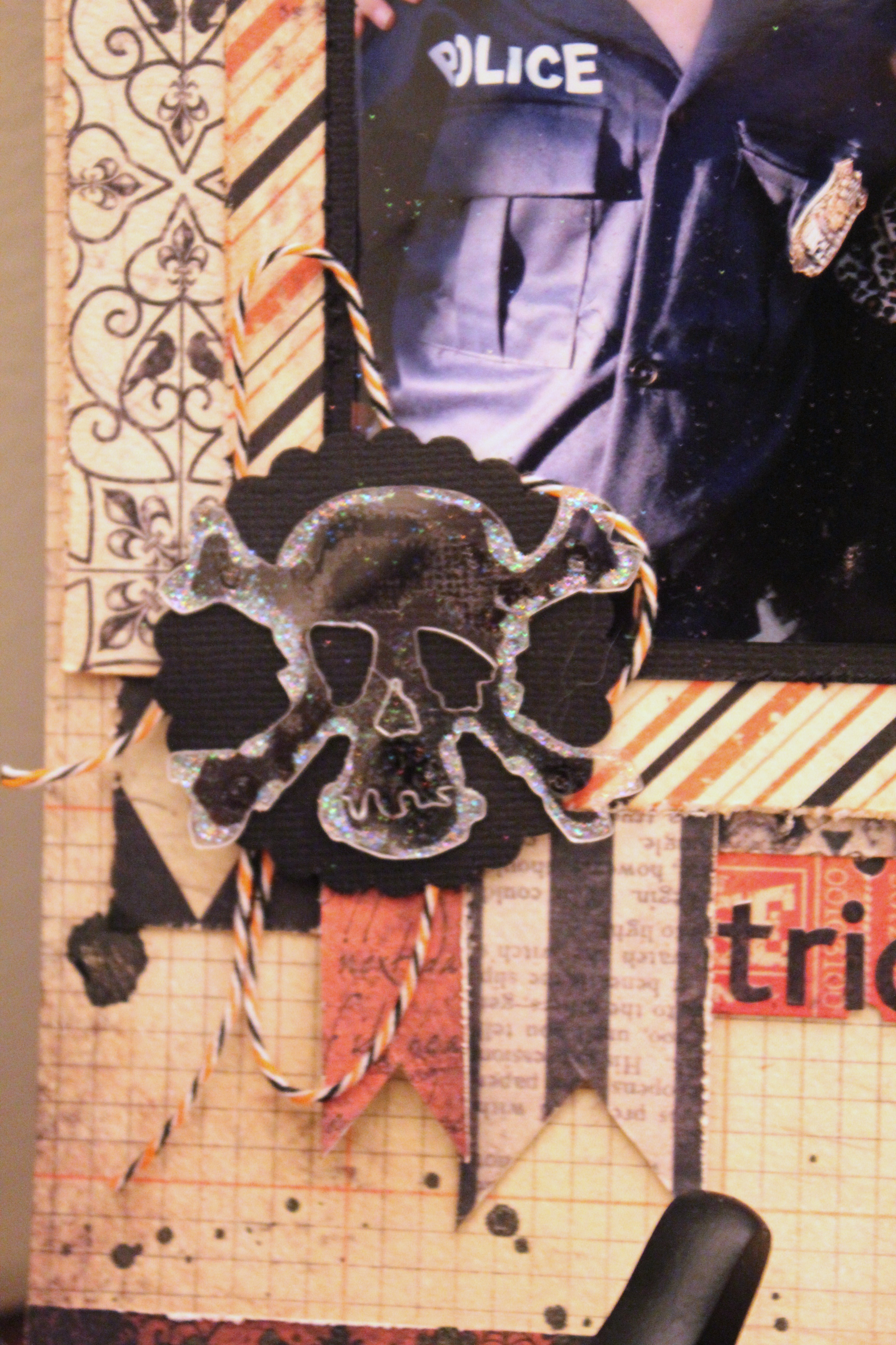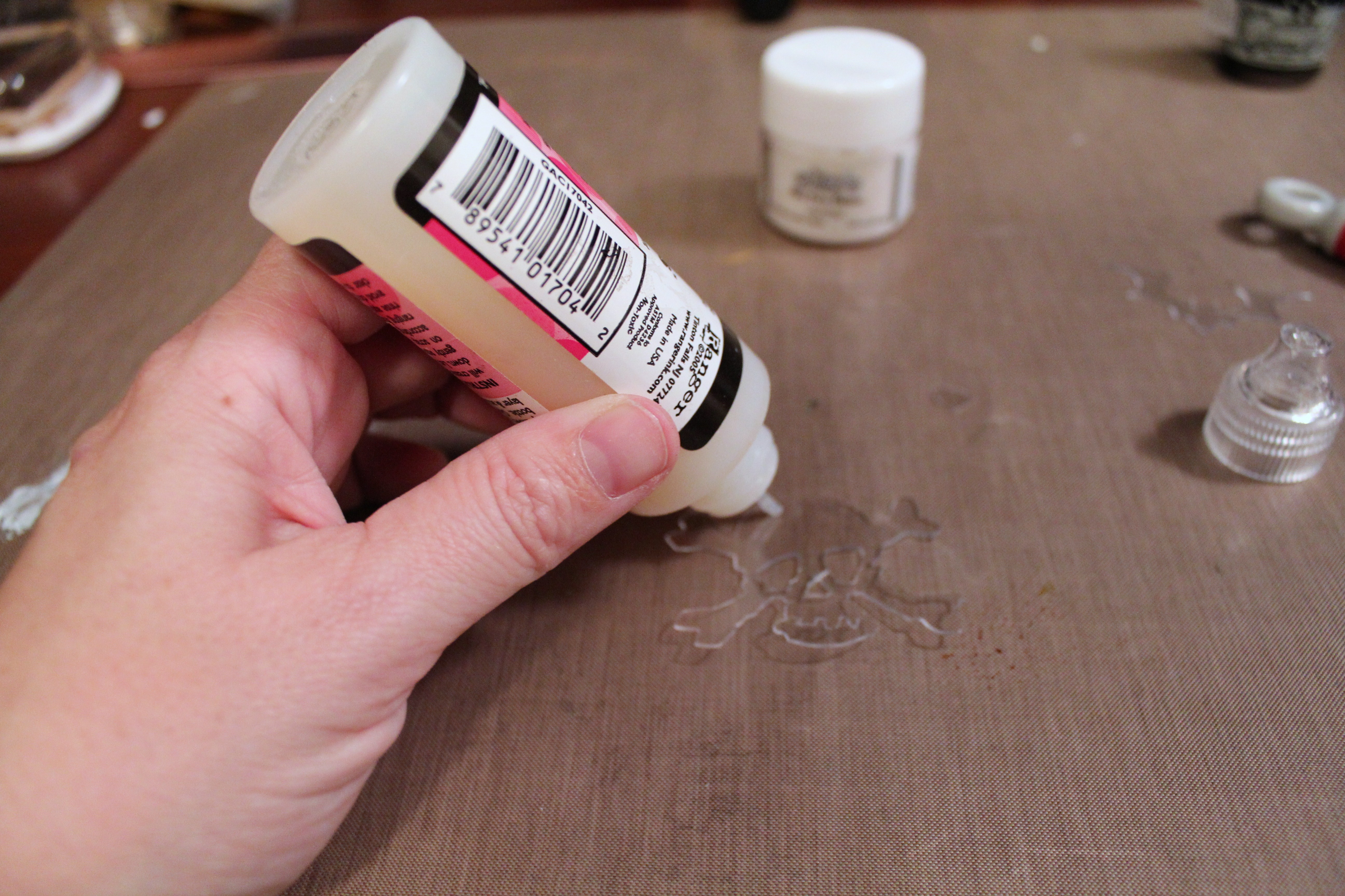 For the skull piece, I used Glossy Accents and Tim Holtz Distress Stickles Clear Rock Candy Dry Glitter. I applied a light coat of Glossy Accents around the edges followed by sprinkling the dry glitter.