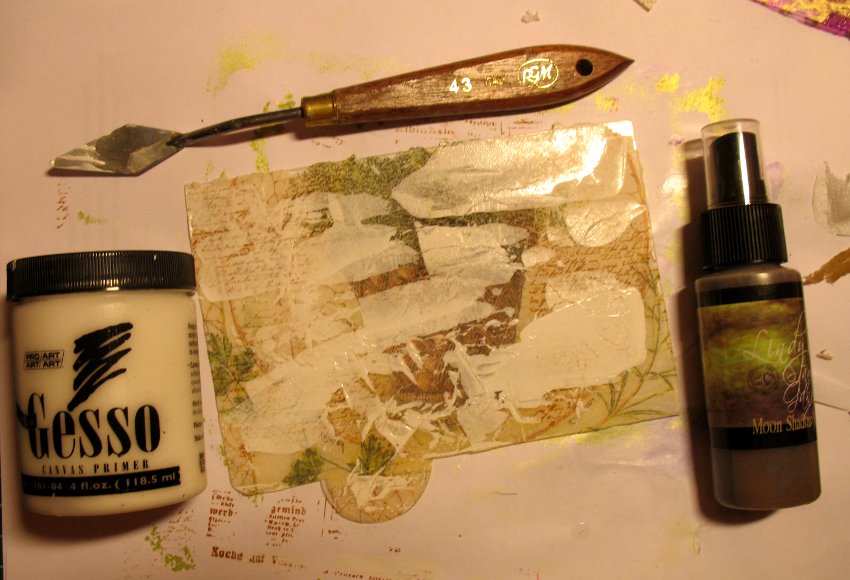 on the picture above you can see how the folds took the gesso and it looks a little bit shabby