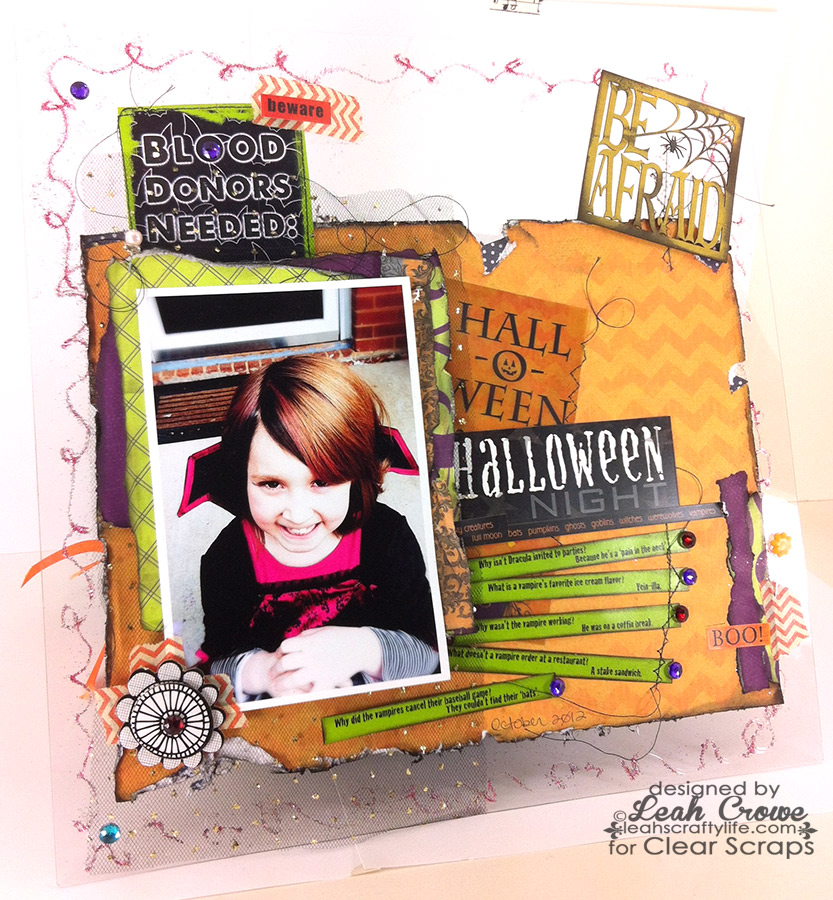 Good morning! Leah here with you today to share this spooky cute layout using Clear Scraps 12×12 Acrylic sheet and Quick Quotes hauntingly cool Halloween line.