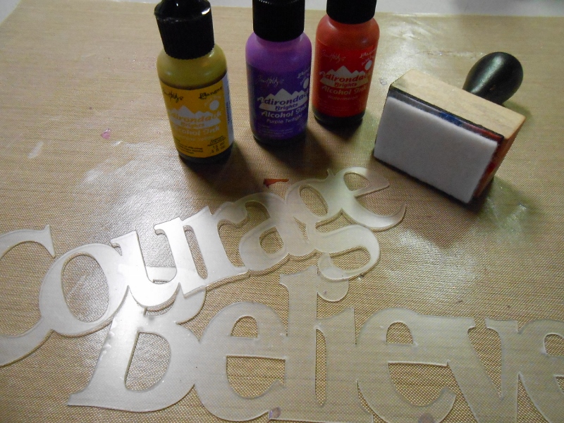 After removing the protective plastic from the back of my title, I daubed on the first layer of ink. These colors are very vibrant and the first layer will give you very bright colors. Depending on your project and the colors you’ve chosen, you may want to stop at one layer and not over-work the colors.