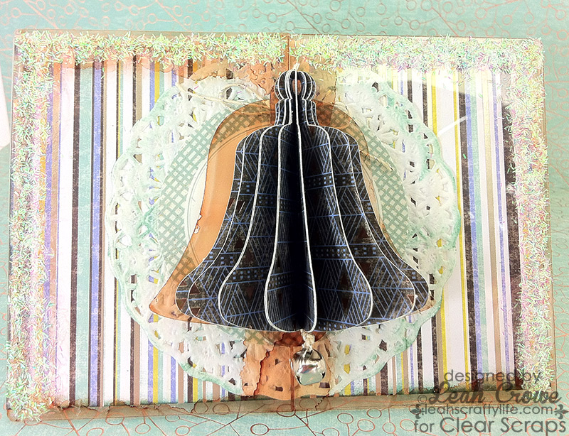 Other products used: Jingle Bell (Michaels), Glitter (Martha Stewart), Alcohol Ink (Ranger), Gold string & doily (misc)