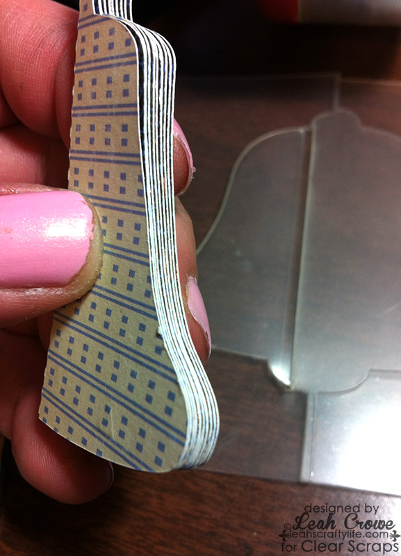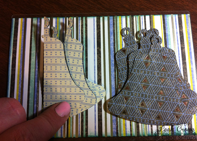 To create the 3d Bell, I cut bell shapes out (7 of them) using my Cameo Silhouette and the Blacktail Canyon paper. Once cut, fold all the bells in half.