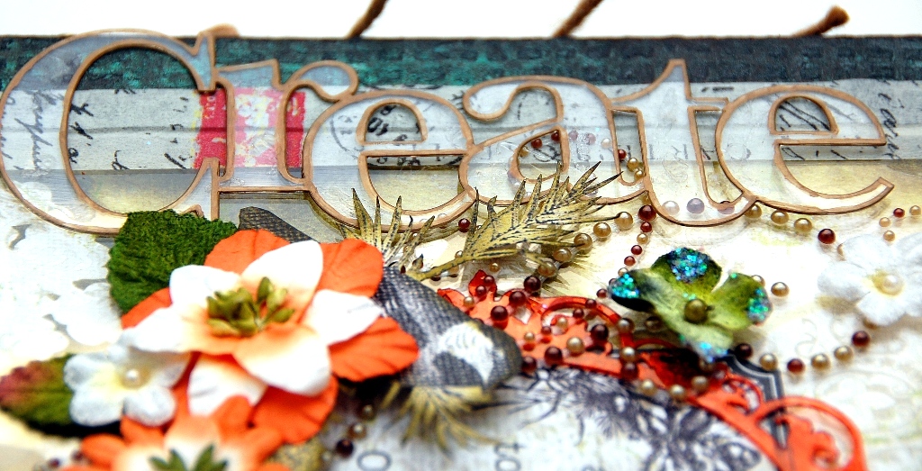I've also used a Clear Scraps Expression Clear Word titles, "Create" as the title of this album. To keep the transparent effect of the title, I've make it more visible by simply outlining it with a gold Sharpie marker.