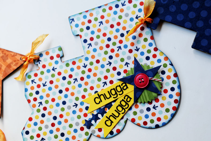 Hi everybody! Hope you all enjoyed the blog hop yesterday! Tonya here today to share another brand new CHA project with you. This is a chipboard Train Banner. This would make such a cute addition to a little boys room or for some party decor.