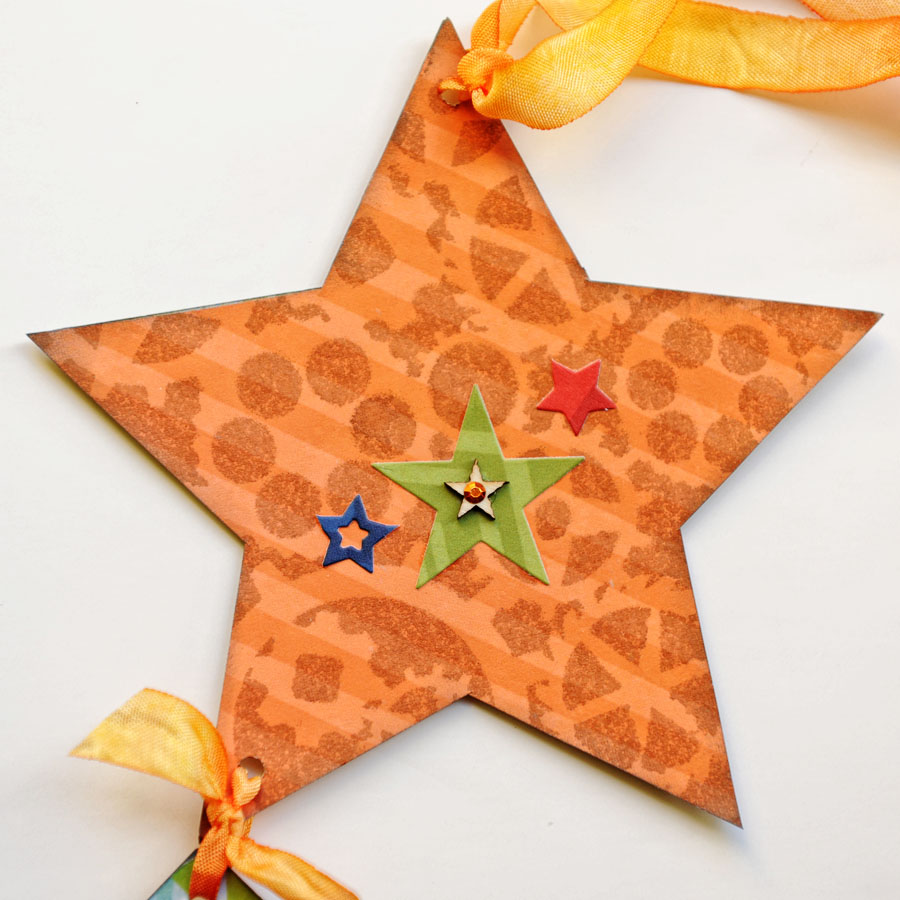 For the stars that are the end pieces of the banner, I used the new 6" Gears mask to lightly mist over them.