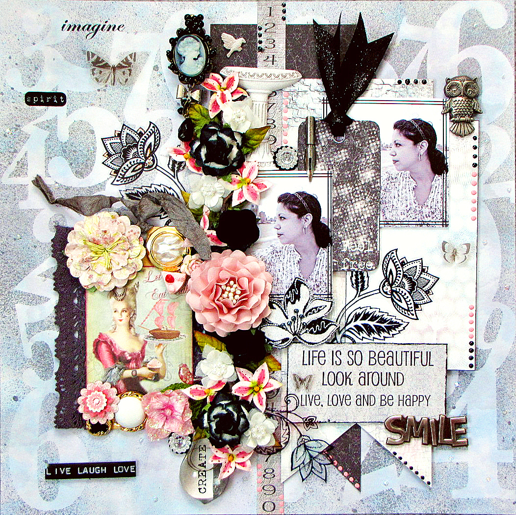 The theme of this page is little ol' me. Once in a while us scrappers need to take the time to document the most important legacy we can leave behind for our loved ones–which is us. So this page consists of elements that represent me in some shape or form.