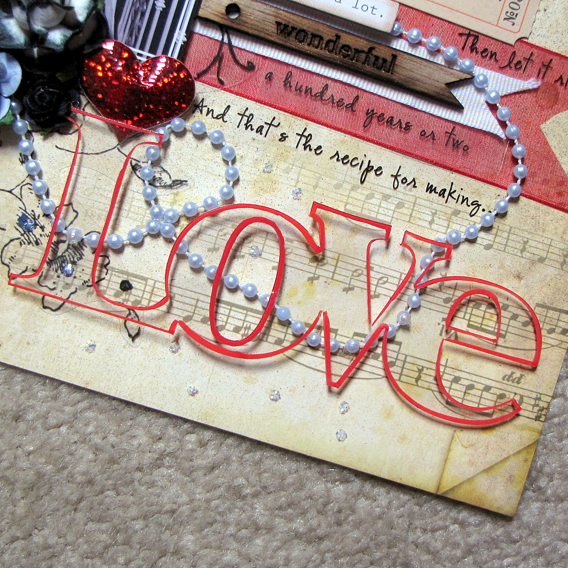 I've used one of Clear Scraps oldies but goodies; an Expressions Clear Word Title–the 'Love' expression.