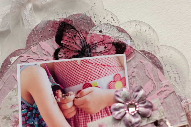 When I am looking at numerous taken past summer, I keep in mind that mini album is the best idea to collect them just in one place. I have some photos of daughter and her friend, so Flower Brag Bag perfectly suits their cute photos