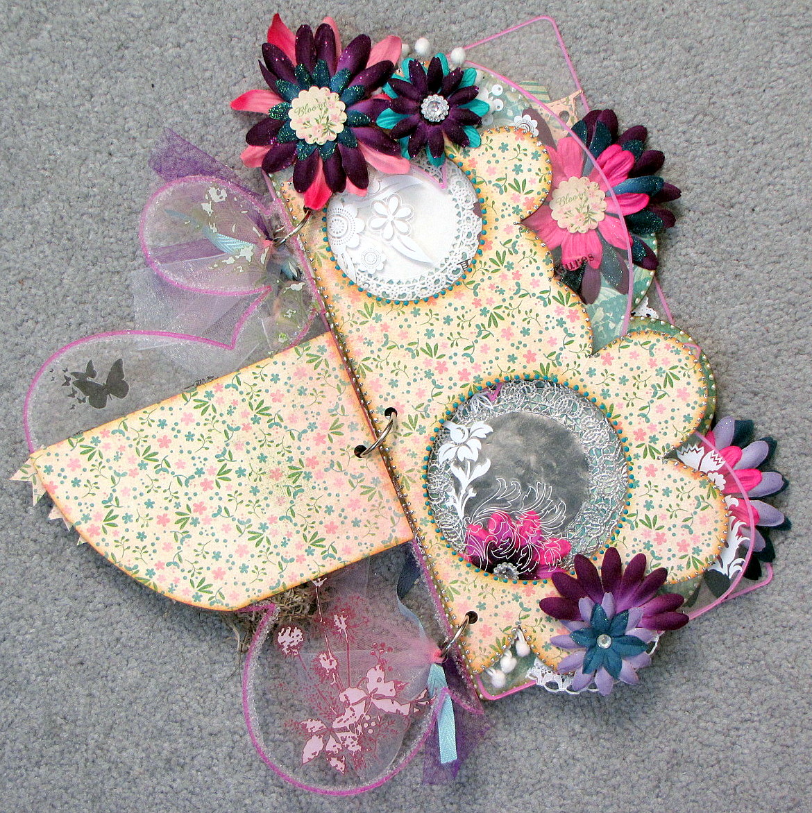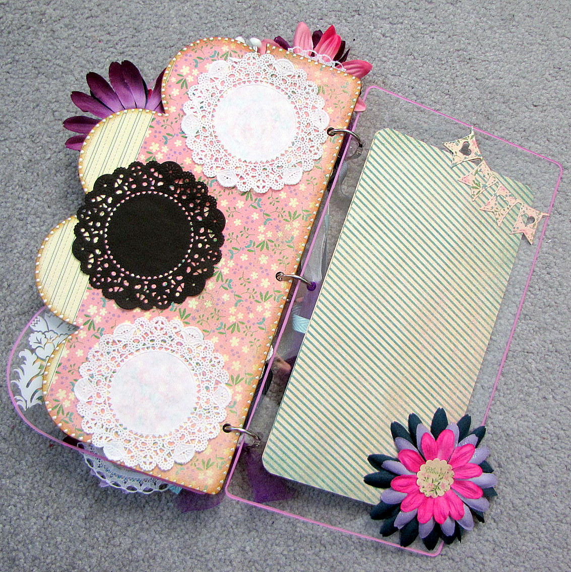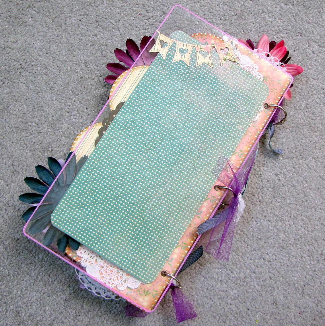 I used 1" book rings to hold my album together & then tied several organza & satin ribbons along with pink & purple tulle to the book rings.