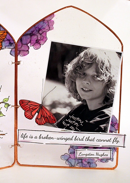 Supplies Used: Clear Scraps (Trifold Regular Frame, Small Dream Expression), Stampendous stamps, Sharpie Markers, Ranger Alcohol Inks, Tsukineko (Goosebumps Spray, Memento and StazOn), Copper Foil, White acrylic paint