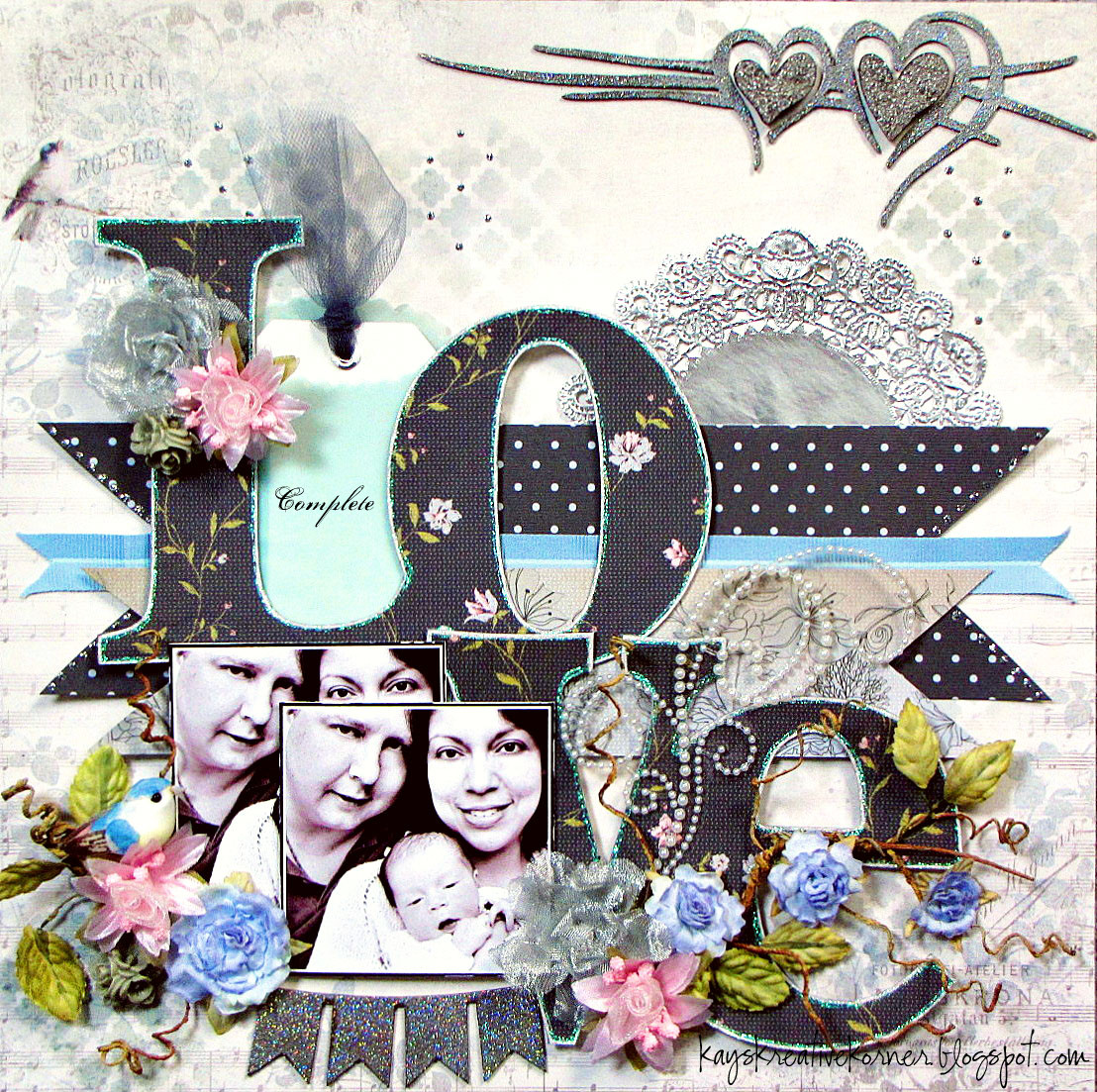 Hello once again fellow crafters! Kay here with my latest project using fabulous products by Clear Scraps. For this layout I've used the Large Expressions Clear Word Title 'Love' & one of Clear Scraps latest products, the 6" Quarterfoil mascil.
