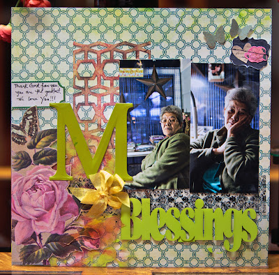 Also used the Expression Small Blessings (spray paintred) for title, and embellished my page with Acrylic Bird Shapes. Other supplies used: Ki Memories, May Arts Ribbon, My Minds Eye and martha Stewart.