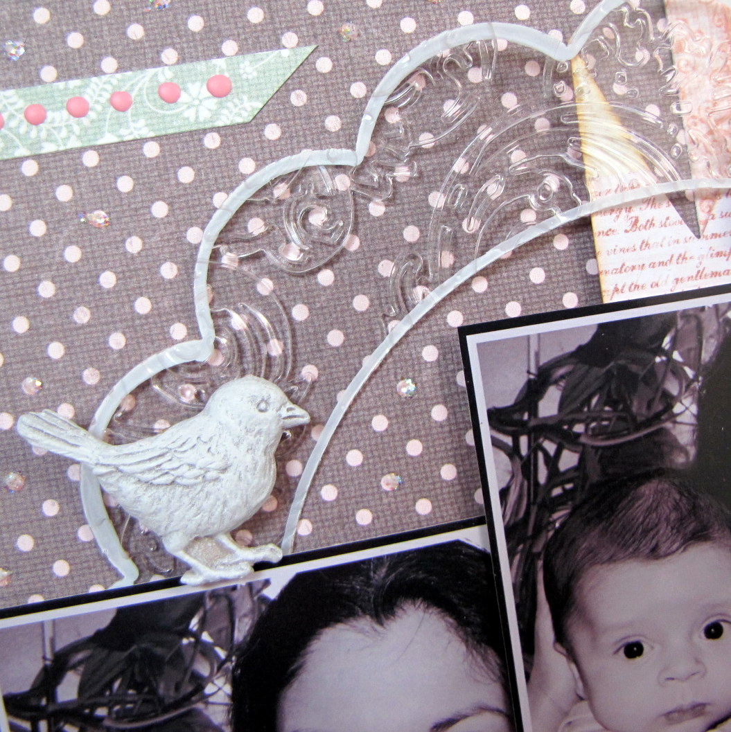 Instead of using the Scallop Circle Frame…well, as a frame–I decided to cut it in half and use it more as an embellishment to my page.