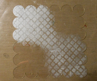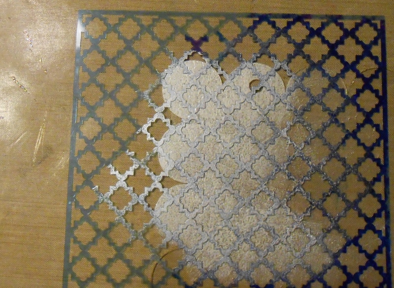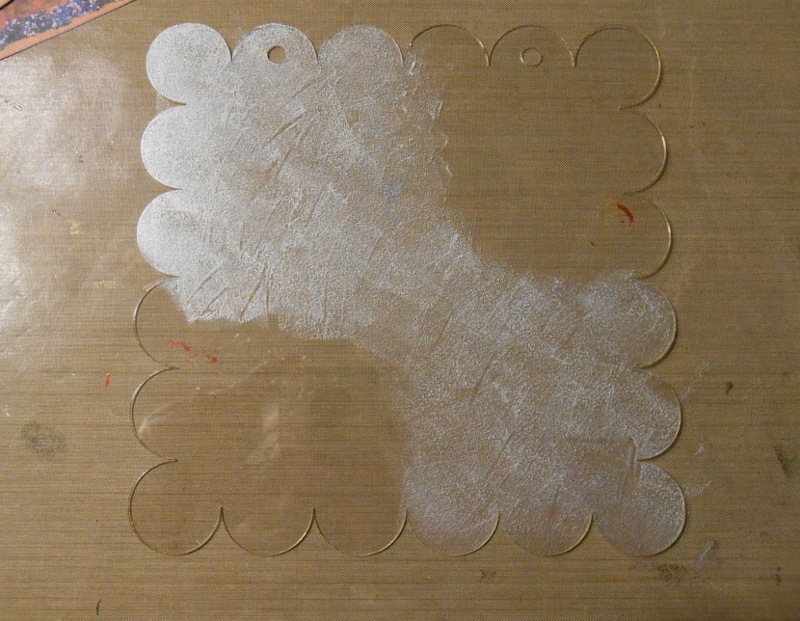 I created a frosted background by sponging a very light layer of pearl paint in diagonal sections of the frame.