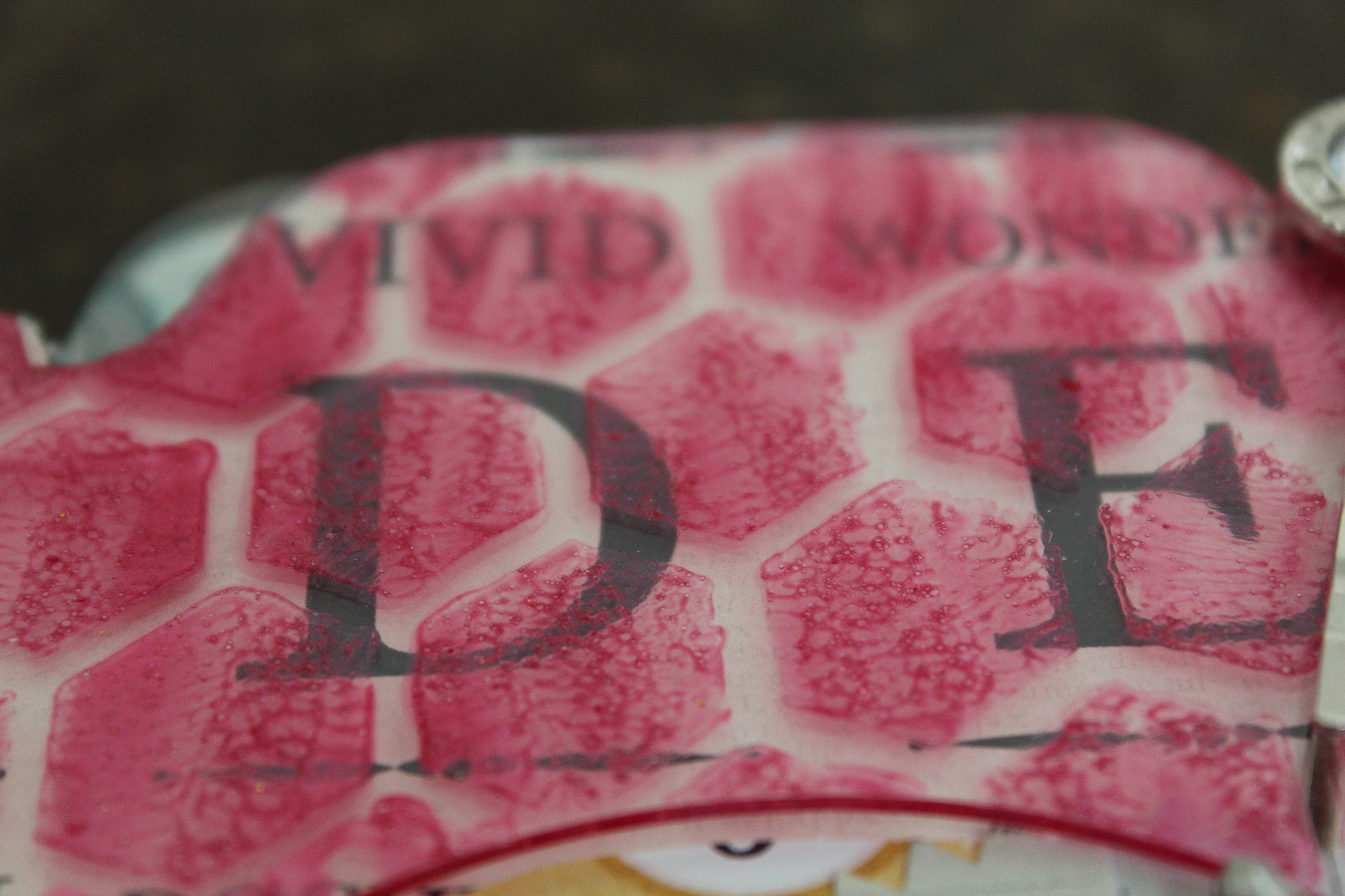 For this page, I left the acrylic bare from paper and instead used my 6 Inch Circle Mascil with alcohol ink! I love the background effect it gives while allowing other pages to show through!