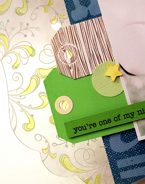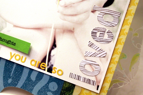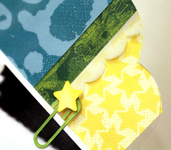 3. Adhere pattern paper to the back of the acrylic Deco shape. Adhere photo to the front of the layout.