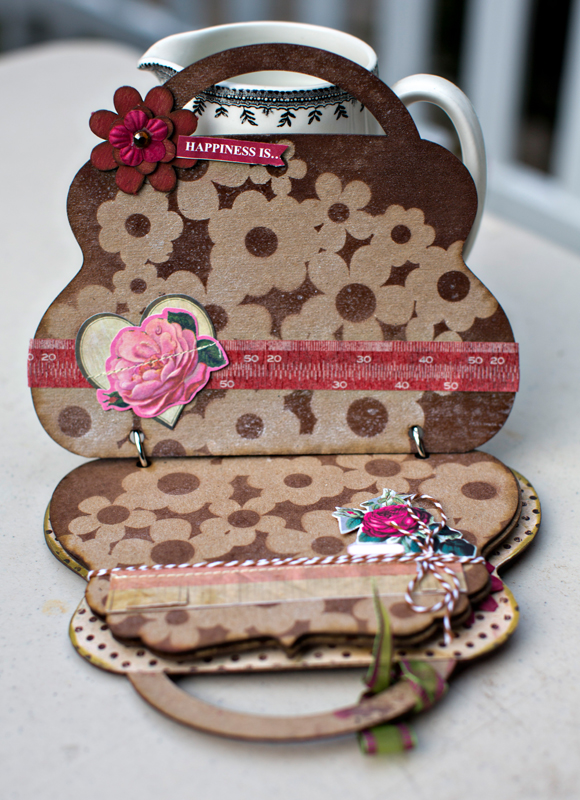 Hello hello!!! Adora here, sharing this Chipboard Brag Bag Album with you today! I Love that It comes in different fun shapes, it's a perfect mini album for girls . I really like how the effect of paint and a little glitter mist on the chipboard, it resembles a leathery look. Also used some pieces of the Clear N Chip Little Miss Molly - which is the middle layered flower shapes in the middle.
