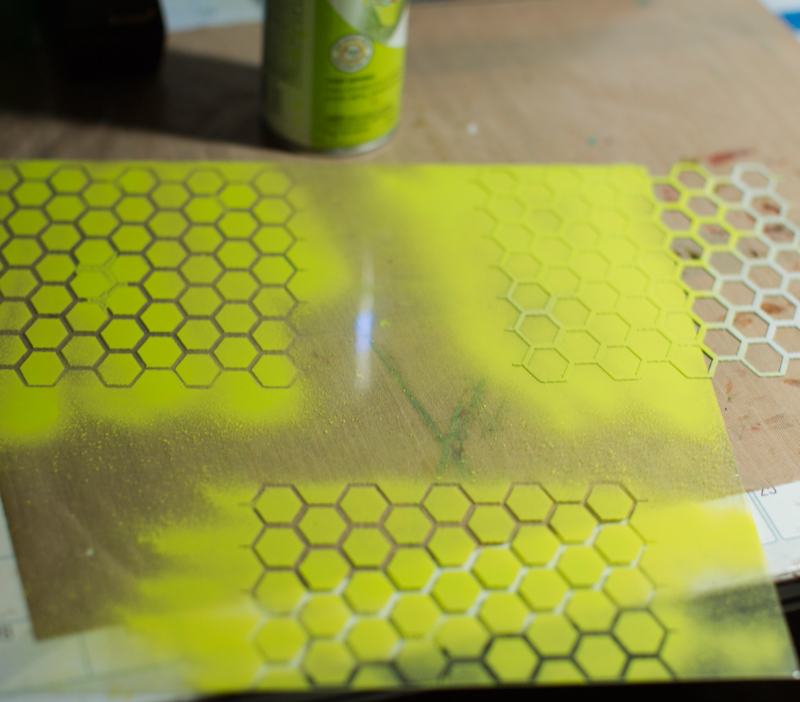 How to create the backgrounnd: Start by masking using spray paint as shown.