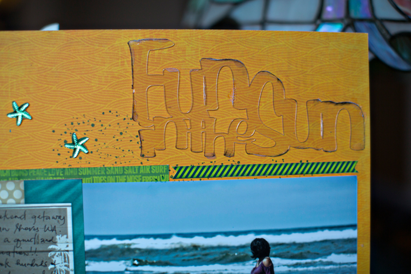 Here's a closer look at this acrylic title. Sometime less is more and this is one of those things. I just wanted to show it as clear on my page just like the clear beautiful day at the beach.