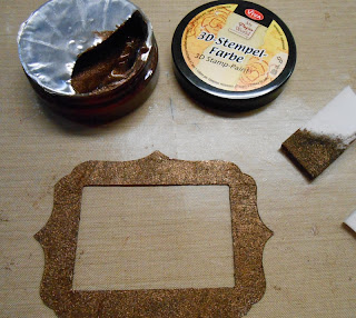 The Clear Scraps Small Rectangle Deco Frame was covered in Viva Decor 3-D stamp paint. I just daubed it on with a makeup sponge.