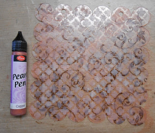 Then I decided I needed a little more color, so I flipped the page back over, and pounced some Viva Decor Pearl Pen – Copper – over the stenciled pattern.
