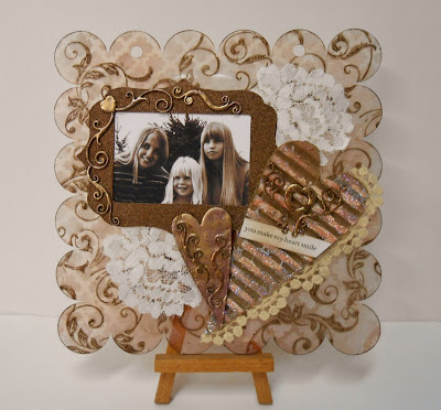 I finished the frame by added some old lace and Piccolo embellishments. The hearts here are cut from corrugated cardboard box, using Sizzix Die.