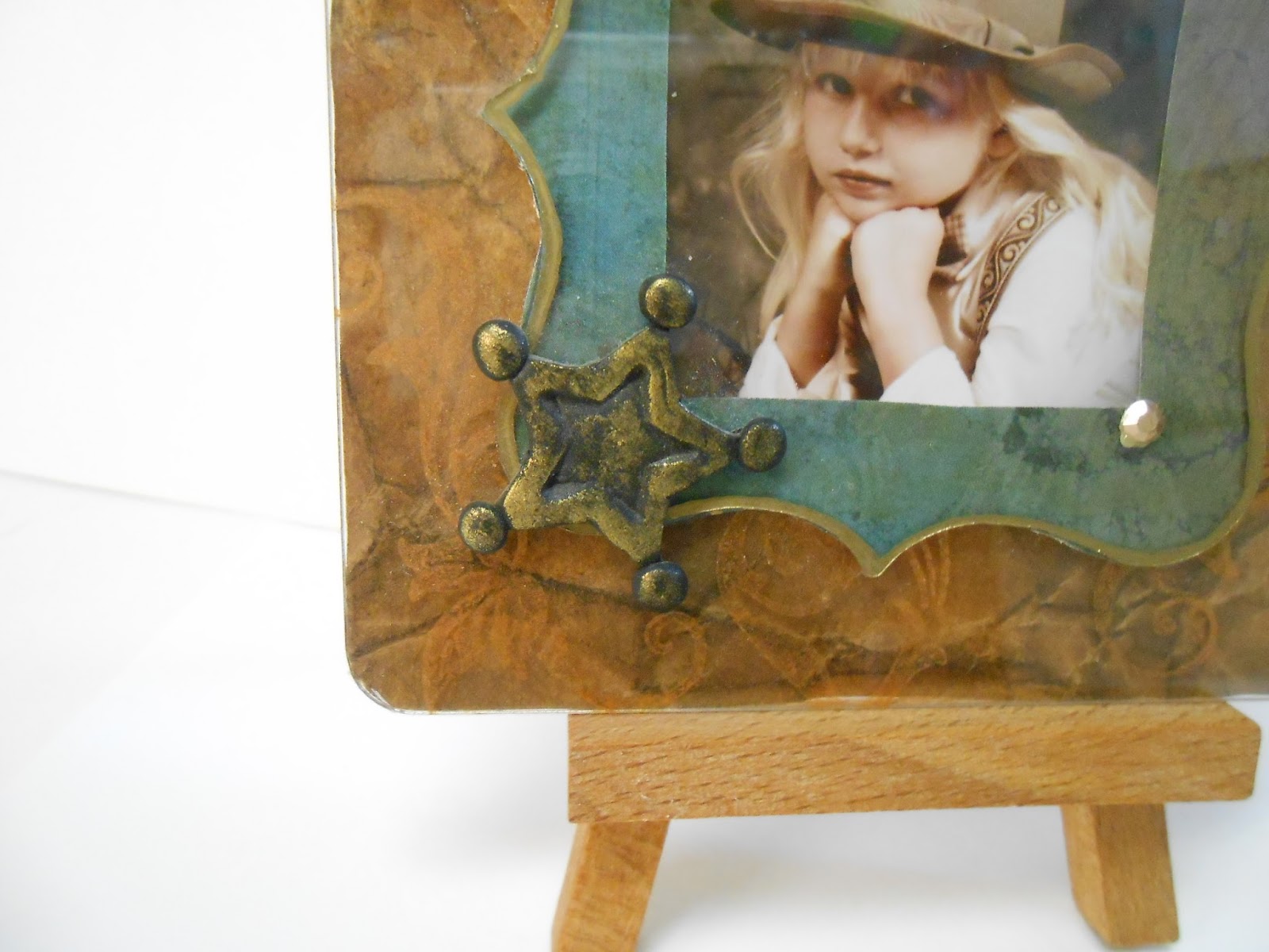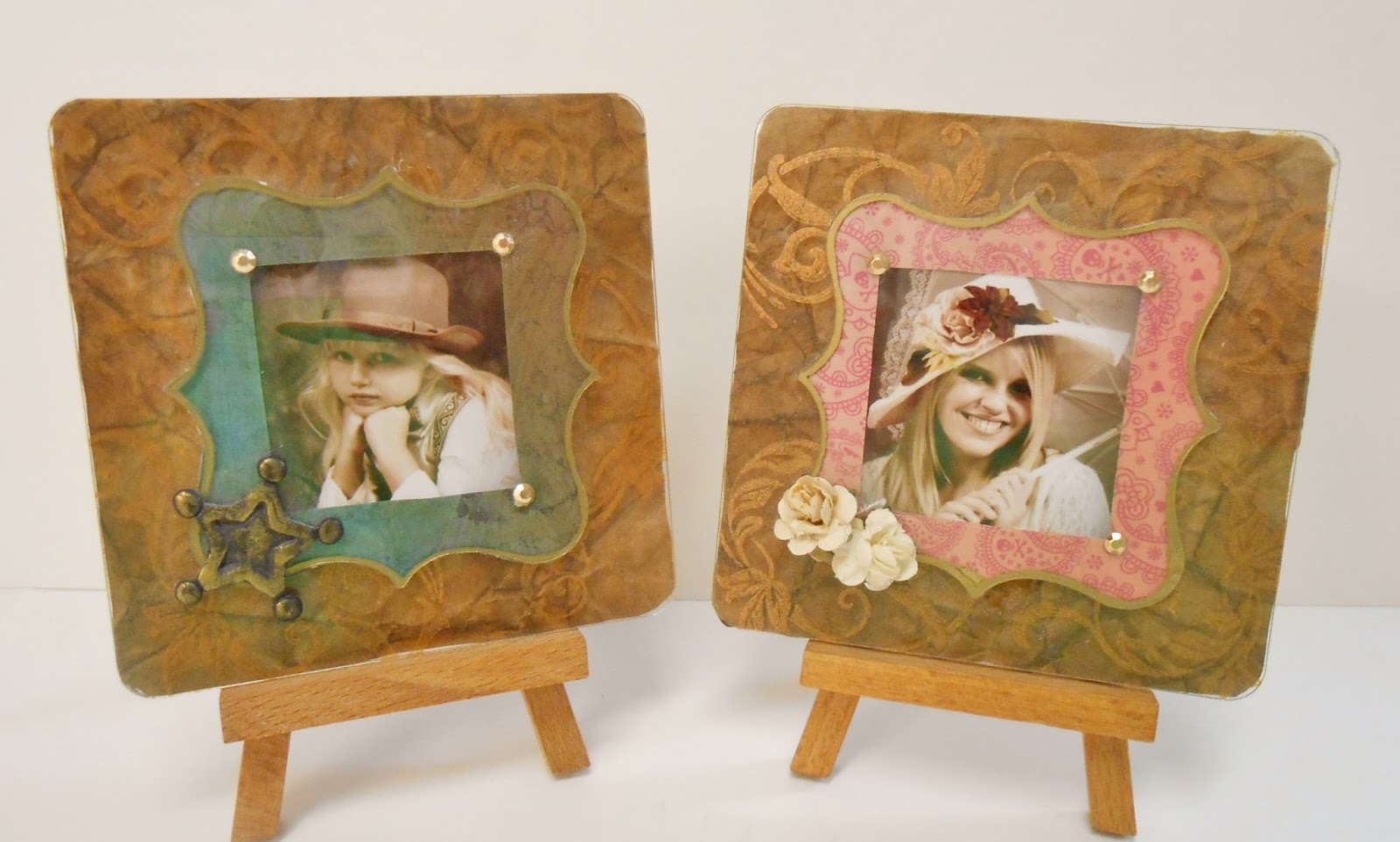 For my final official Design Team project, I wanted to share a couple frames that can be used for framing school pictures. My daughter's day care brought in "Old Tyme Photo's" to do their school pictures, and my older daughter just happened to be working part time at the day care so she was able to get some done as well. The Old Tyme photos inspired these "leather-look" frames, but these frames would look great with regular school photos as well.