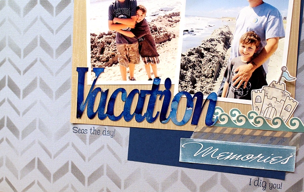 Hi everyone! Wendy here and today I'm sharing a layout using the new Chevron Mascil and Vacation Small Expression. We are enjoying our last few days of summer vacation here before the kids head back to school. I thought it was time I dig out those shore pictures and scrapbook.