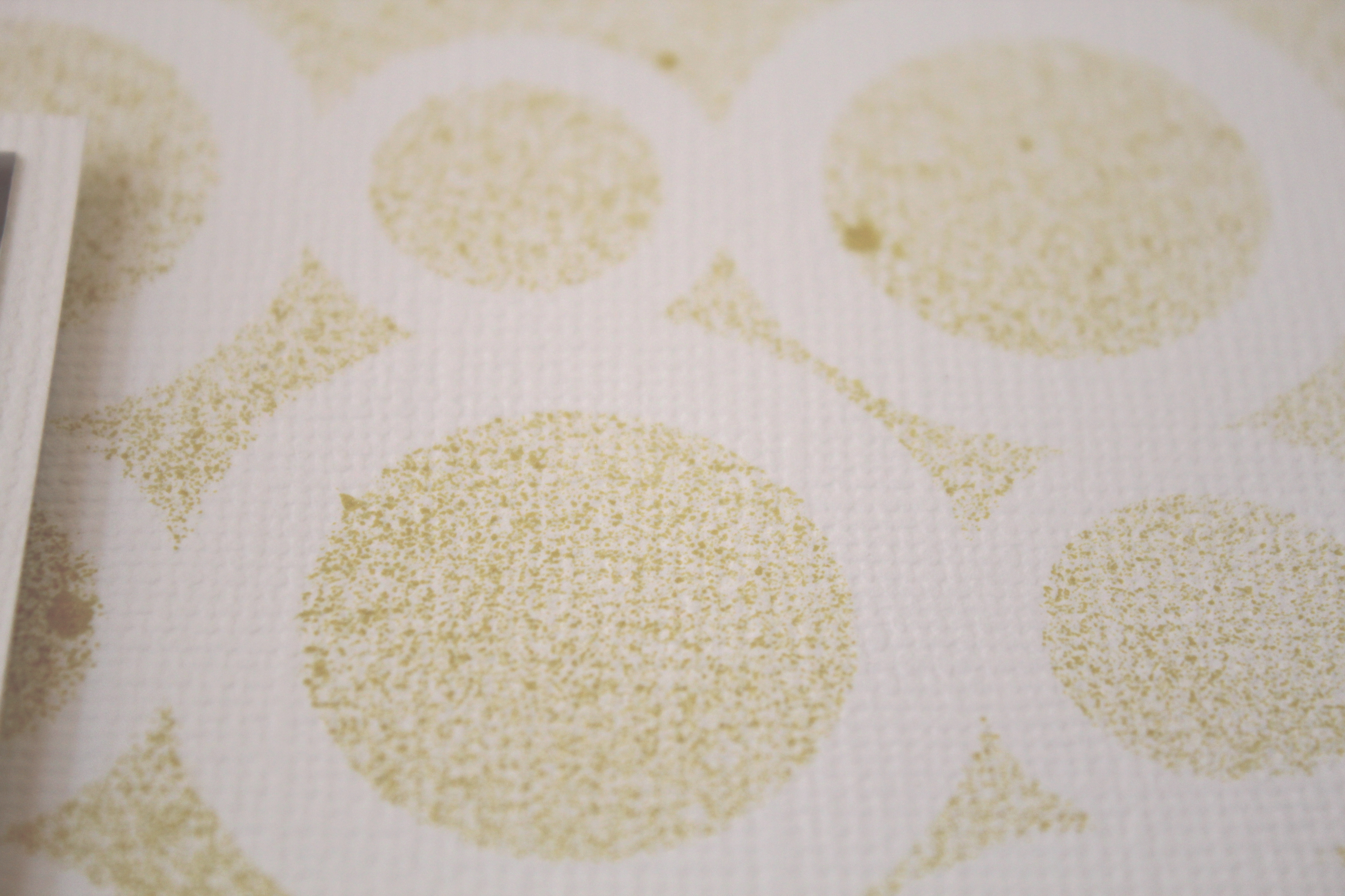 Before adhereing my paper and embellishments, I laid the 6 Inch Circle Mascil onto my cardstock and sprayed lightly with Tattered Angels in Wheat. Here is a close up of the effect: