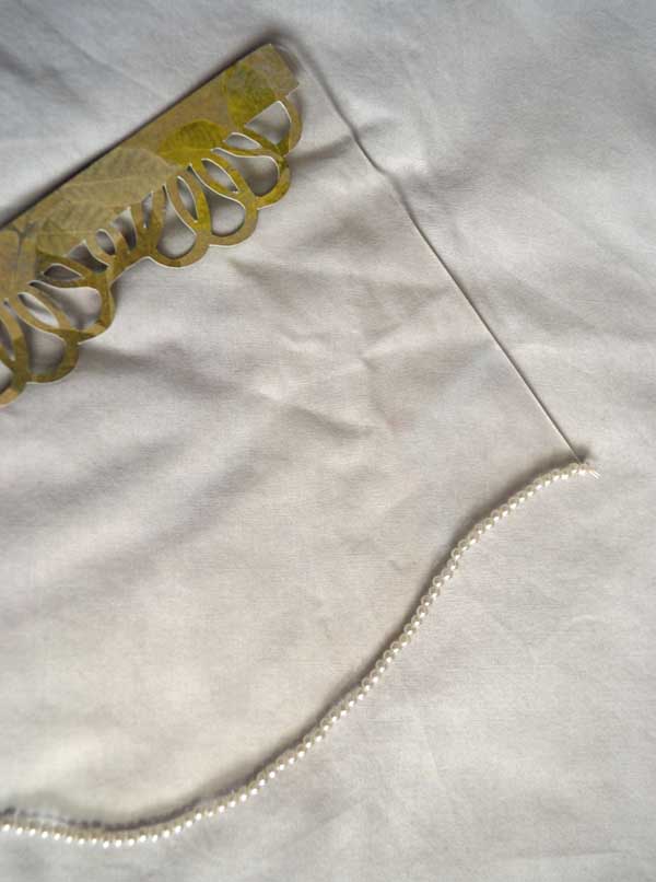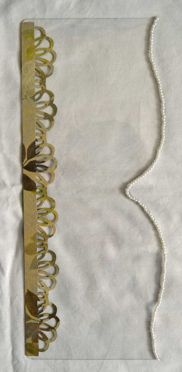 Next, take your pearl strand and and using Zip Dry adhere the pearls to the outside edge of the acrylic page. I did this on both sides.