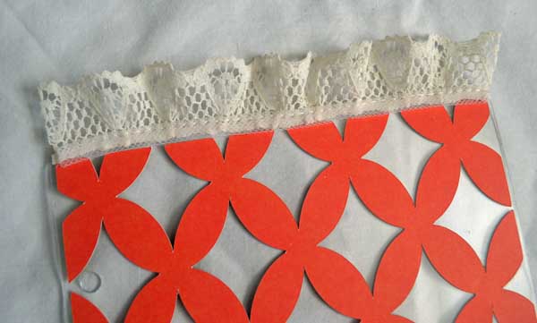 First idea on dressing up one of your clear pages…borders. Whether you use a die cutting machine or punches…this looks great. Cut out your border for the first acrylic page and adhere using Zip Dry. Since you used double sided patterned paper, you can see a nice border pattern on each side.