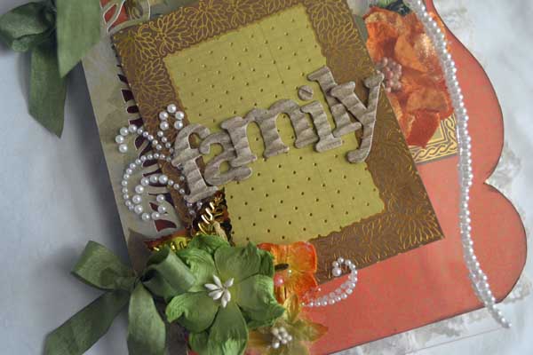 Trace your next page, the chipboard piece, onto a piece of patterned paper, cut and adhere. Do this for the other side too. I also inked the edged for a bit of an aged looked.