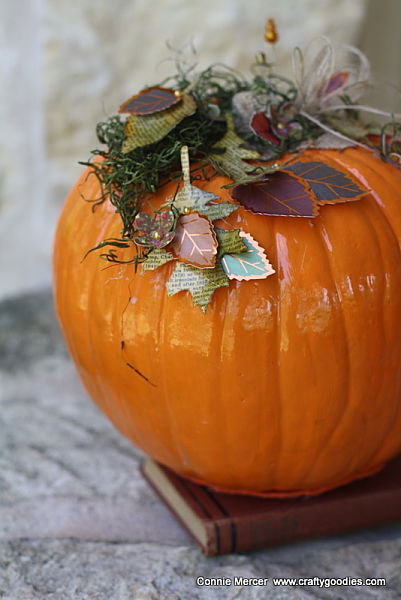 I used the laeves along with some other leaves from S.E.I. and arranged them on the top of the pumpkin. Making a really pretty centerpiece for my table.