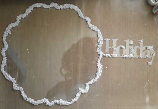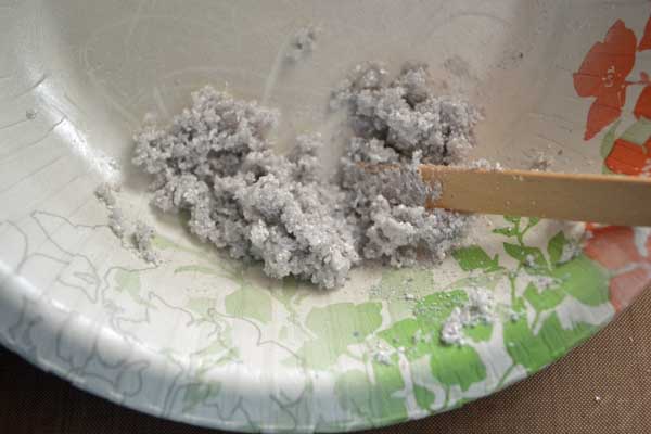 First off you will need to combine all of the dry ingredients into a bowl. I would use this formula and it depends on how much snow you need for your project.