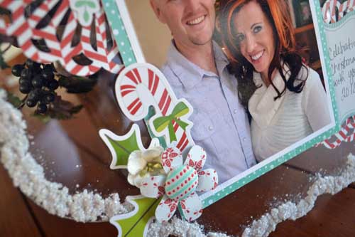 I used the Clear Scraps XL Scallops Shape and the Holiday Word Expression.