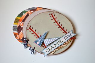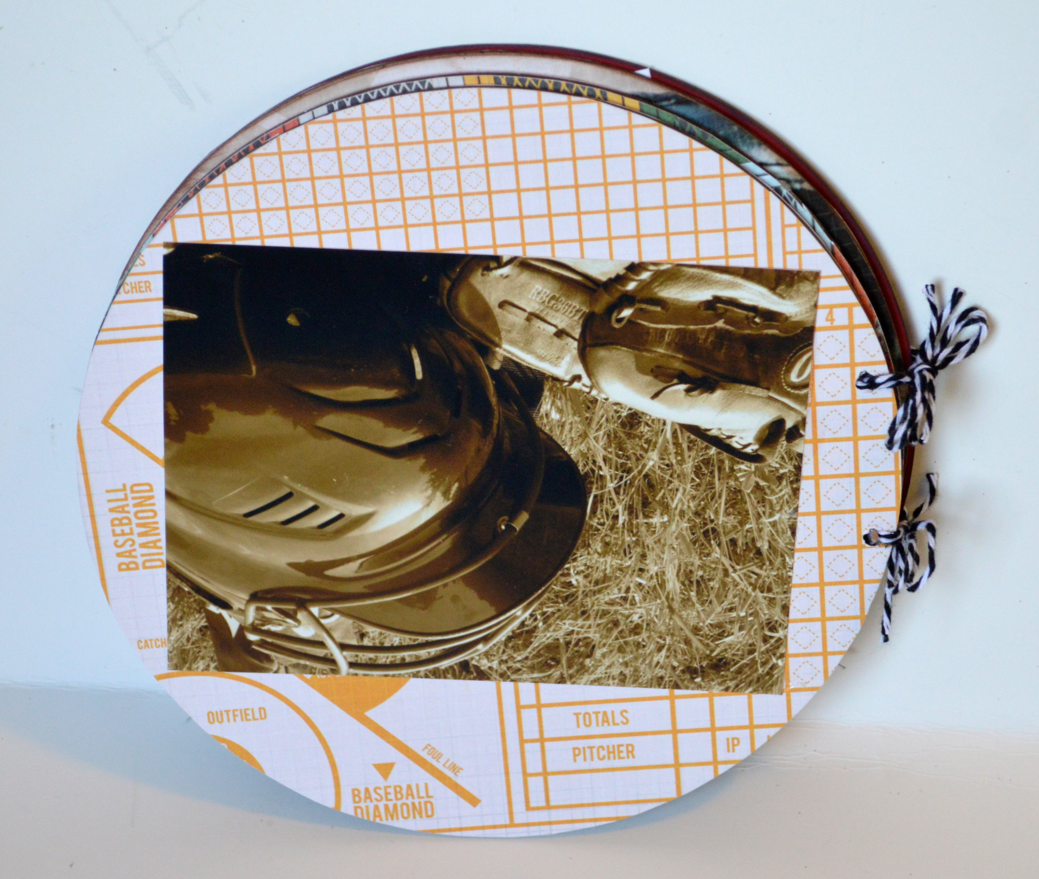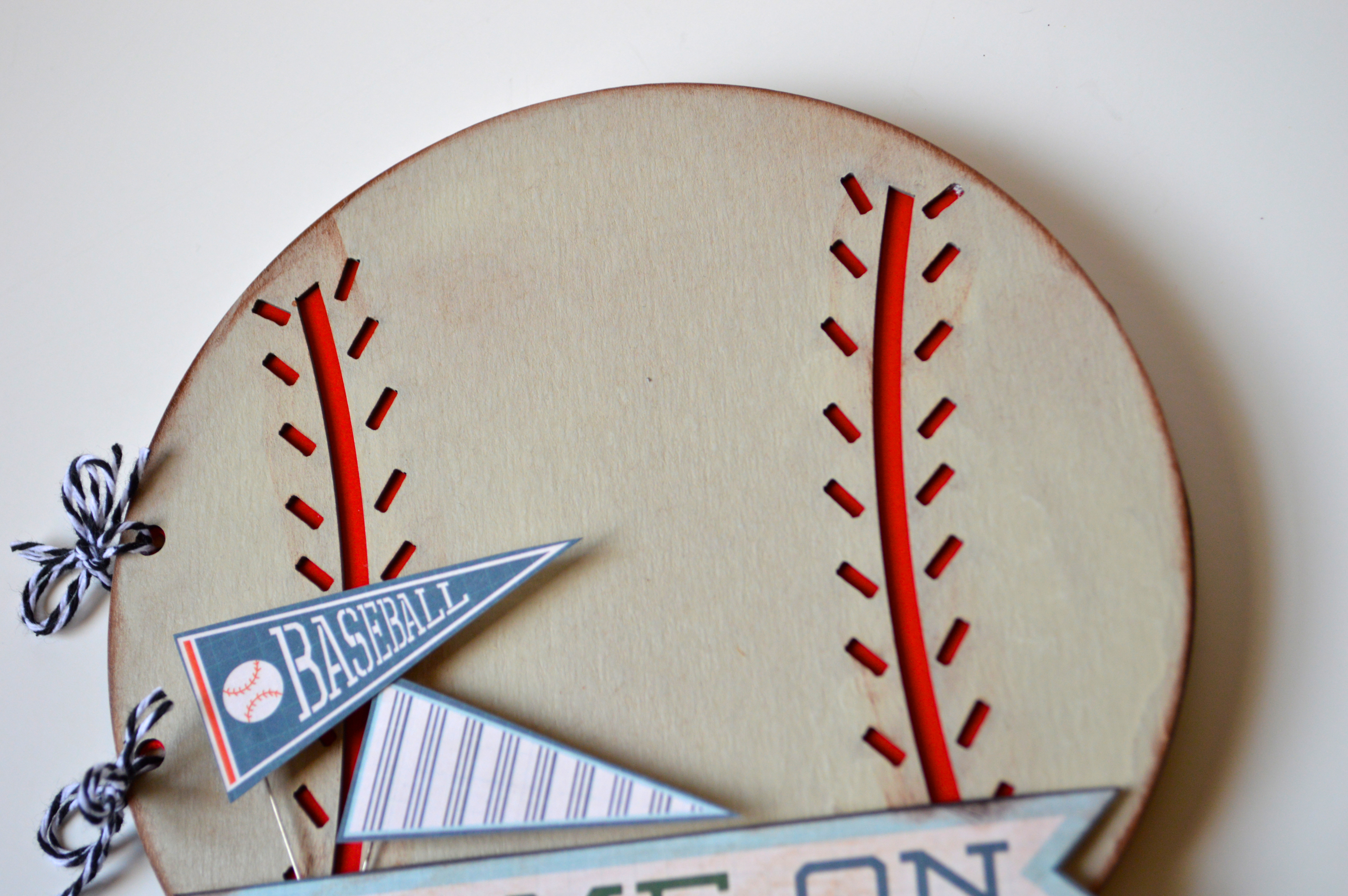 Clear Scraps Baseball Chipboard Album, Krylon Paint (Almond) CutCardStock cardstock, DCVW Sports Paper, Beacon Adhesives, Twinery Twine