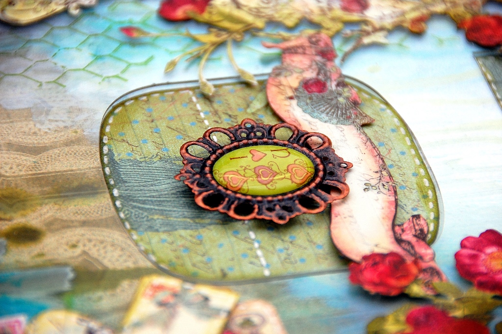 For my background chipboard piece, I've attached some pattern papers to it and blended it using some white gesso and paints.