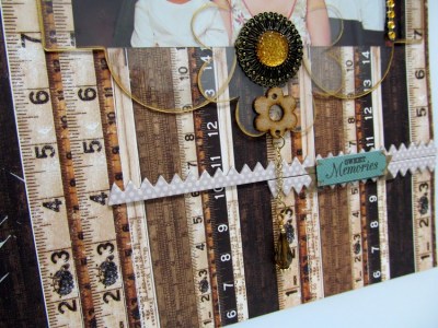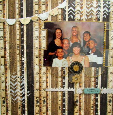 Hi everyone Monica here and today I am here to share a layout I made. I used Clear Scraps Chevron stencil and used one of the pieces from the train banner as an overlay over the picture and flower embellishment to add as decor.