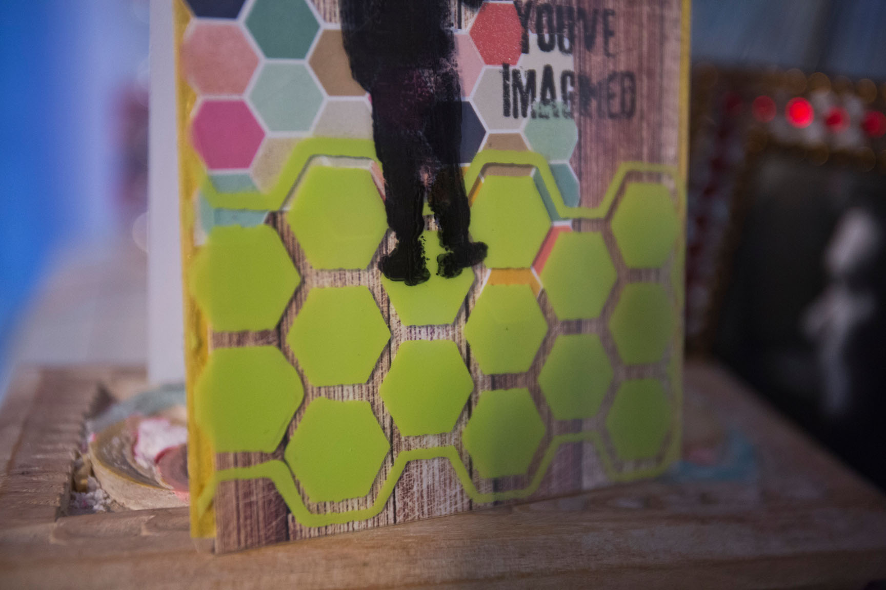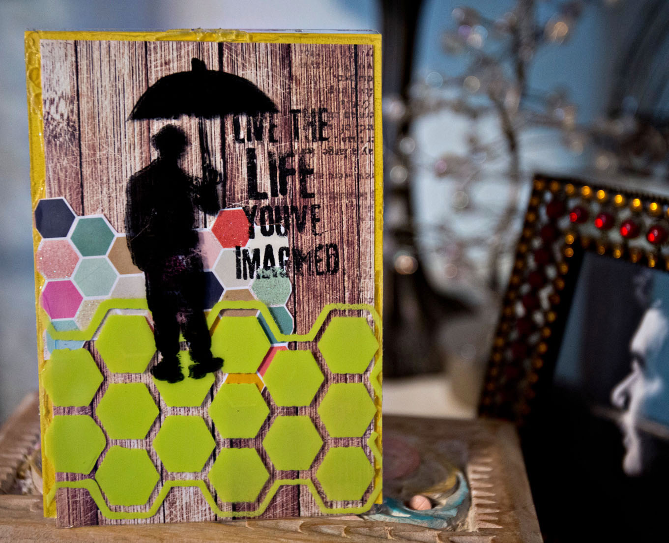 Other Supplies used: Tim Holtz Stamps, Acrylic Paint, Heidi Swapp paper, Beacon Adhesive Glue.