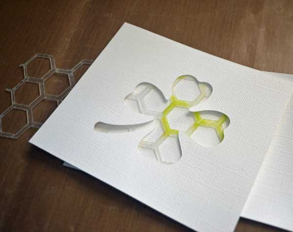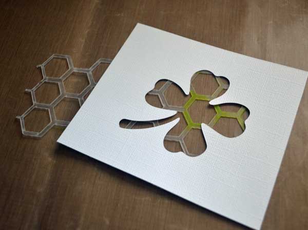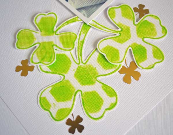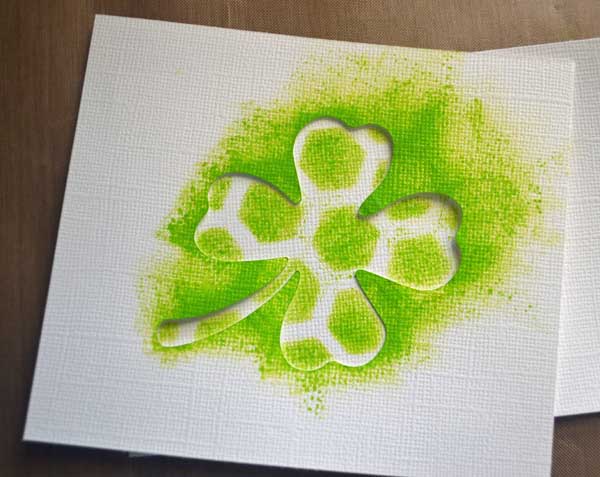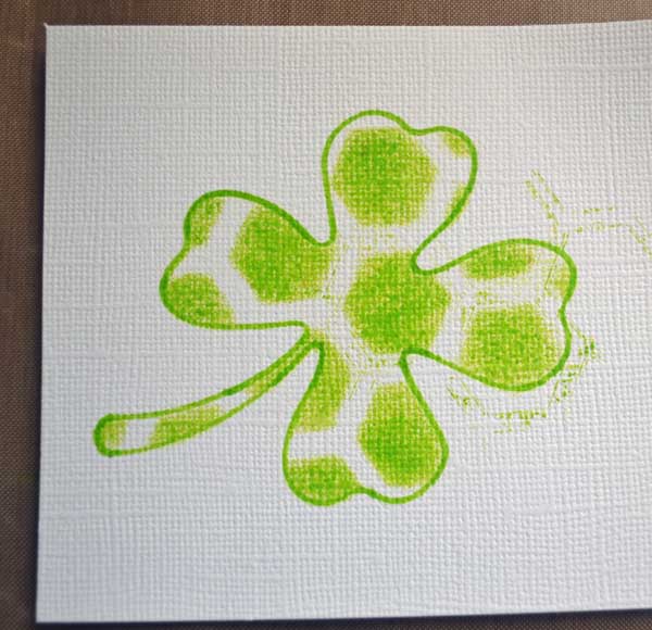 Gather your supplies…your Mixer, ink and a shape that you either punched or cut out from a die cut or die cutting machine. I chose this four leaf clover since we are in the month of March:)