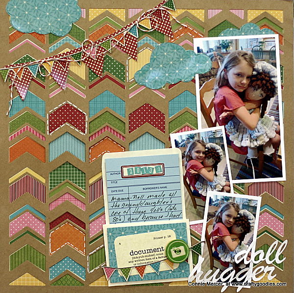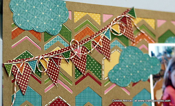Hi, Connie here with a layout using the, very clever, (stencil and shape) Banner and Cloud Mixer. I used them the traditional way. I backed the clouds with pattern paper and cut around, same with the banner shape. I can still use the negative of the shape as a stencil, same with the clouds. That is cool!!!