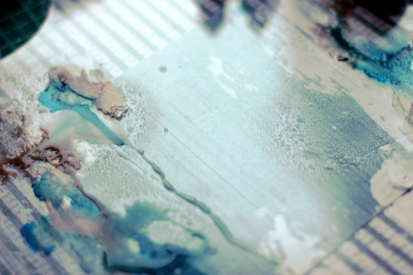 Then I dropped the alcohol inks on the acrulic letting them drip over the covered with gesso areas