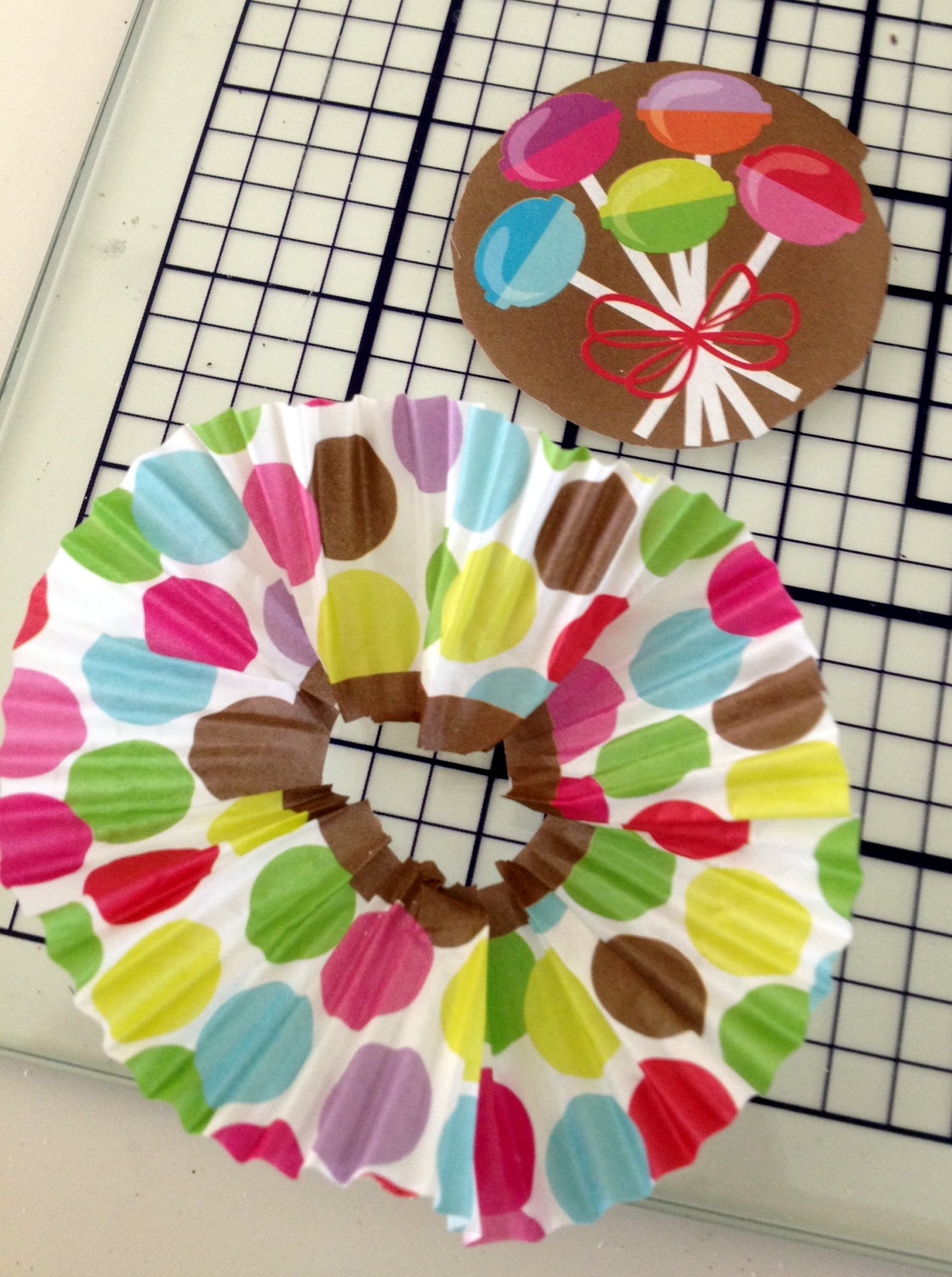 I then cut the middle out of some cupcake wrappers I found at Michael's and scrunched them together and stuck them in place with a glue dot.