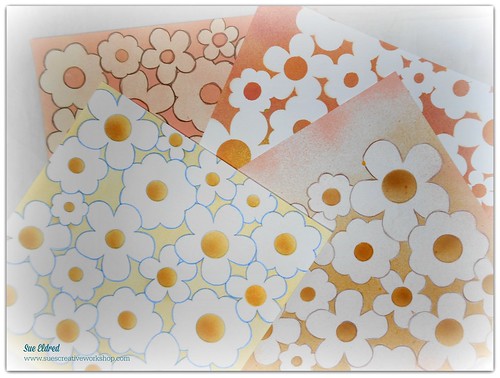 I love the 12" flower stencil from Clear Scraps and I was hooked the very first time I used it. I have a very limited amount of mists and sprays but I some how ended up making a very fun mess. "I was a misting fool."